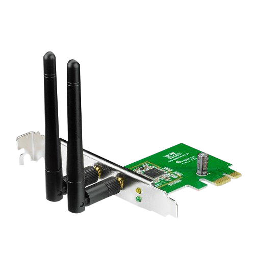 ASUS PCE-N15 wireless-N300 PCI express adapter, supports WEP, WPA-PSK and WPA2-PSK methods for enhanced security.