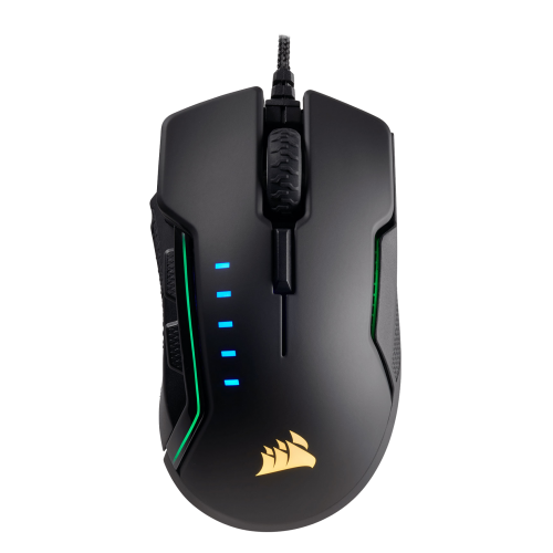 Corsair glaive rgb is the ultimate gaming mouse in performance and comfort. The contoured shape is designed for extended play. A custom high-accuracy 16000 dpi optical gaming sensor ensures maximum performance. Choose between 3 styles of interchangeable thumb grips for a tailored fit. On-board profile storage saves lighting effects, macros and dpi settings for universal access to your settings on any pc. The all-new omron switches are rated for 50 million clicks, providing an ultrafast response and reliability over time. 3-zone dynamic rgb backlighting enables vivid rgb lighting effects and unique customization. An aluminium scroll wheel with rubber grip guarantees solid response and accuracy.